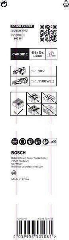 Säbelsägeblatt Expert Hollow Brick Länge 455 mm Breite 50 mm Zahnteilung TPI 2 12,7 mm S-Schaft 1 Stück / Karte E6423422