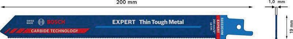 Säbelsägeblatt Expert Thin Tough Metal Länge 200 mm Breite 19 mm Zahnteilung TPI 18 1,4 mm S-Schaft 1 Stück / Karte E6423401