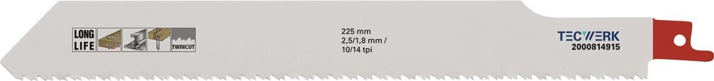 Säbelsägeblatt Länge 225 mm Breite 25 mm Zahnteilung TPI 10/14 2,5/1,8 mm gefräst, geschränkt 5 Stück / Karte
