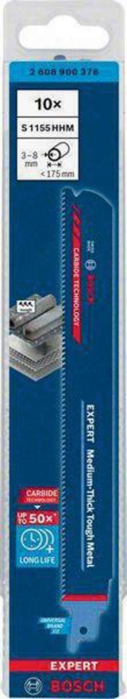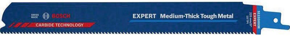 Bosch Carbide-Technologie für langlebiges Schneiden von Metall mittlerer Dicke · feinere Zahnteilung für dünnere Bleche und Rohre mittlerer Stärke · passend für alle S-Schaft-Säbelsägen