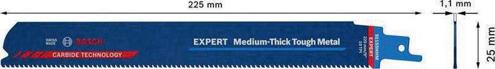 Säbelsägeblatt Med. Thick Metal Länge 225 mm Breite 25 mm Zahnteilung TPI 10 2,5 mm S-Schaft 10 Stück / Karte 2608900376 E6441102