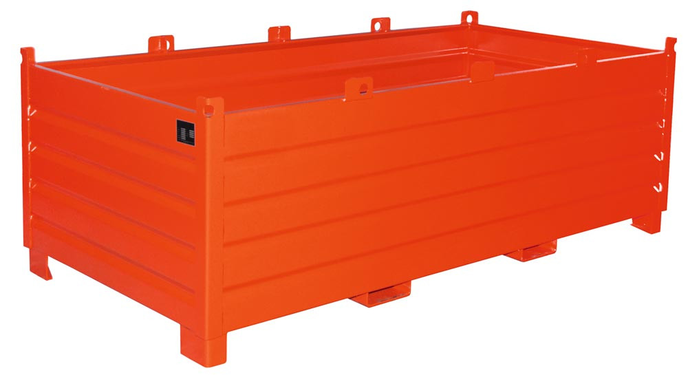 Sammelbehälter, Stahl, Traglast 2250 kg, Volumen 2,0 cbm, LxBxH 2400x1200x850 mm, lackiert RAL 3000 feuerrot