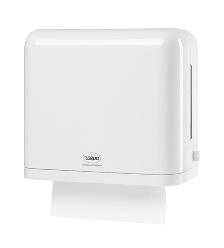 Der „kleine Bruder“ steht der XXL-Version in keinem Detail nach. Mit zeitlosem Design und hoher Funktionalität setzt er in kleineren Waschräumen Akzente. Individuell einstellbar in Blattbreite-/tiefe und somit für alle Falzarten geeignet. Füllkapazität: 2 Pack.