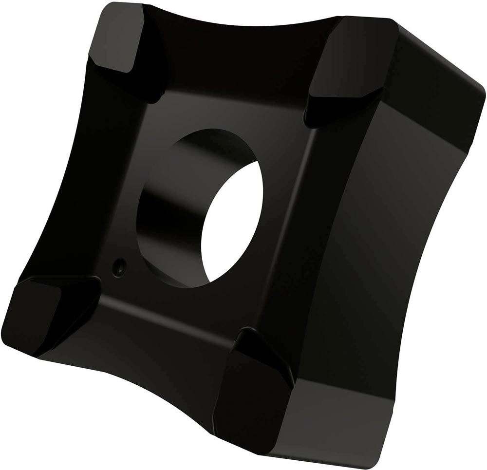 Doppelseitige Scarfing Wendeschneidplatte · quadratisch mit einer Hauptschneidenlänge von 19.05mm · 8.15mm dick und einen Arbeitsradius von 30mm für Rohrdurchmesser von 35 bis 44mm · T9335 MT-CVD beschichtetes funktionelles WC-Co Hartmetall innerhalb des ISO-Substratsbereichs P20-P45/M15-M40 und S15-S25 zum entgraten von Stahl · Edelstahl und Superlegierungen Rohren und Röhren