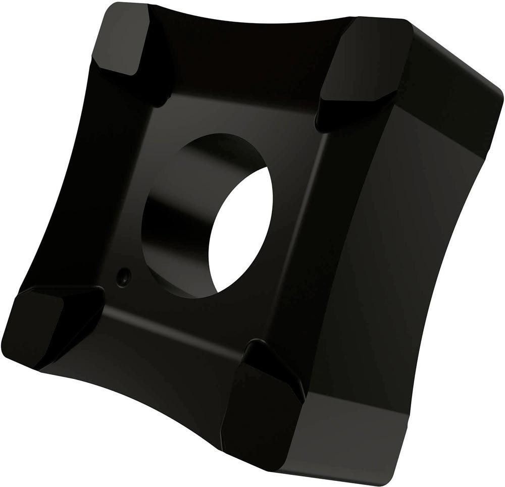 Doppelseitige Scarfing Wendeschneidplatte · quadratisch mit einer Hauptschneidenlänge von 19.05mm · 8.15mm dick und einen Arbeitsradius von 40mm für Rohrdurchmesser von 46 bis 58mm · T9335 MT-CVD beschichtetes funktionelles WC-Co Hartmetall innerhalb des ISO-Substratsbereichs P20-P45/M15-M40 und S15-S25 zum entgraten von Stahl · Edelstahl und Superlegierungen Rohren und Röhren