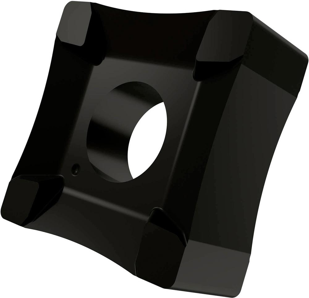 Doppelseitige Scarfing Wendeschneidplatte · quadratisch mit einer Hauptschneidenlänge von 19.05mm · 8.15mm dick und einen Arbeitsradius von 45mm für Rohrdurchmesser von 52 bis 65mm · T9335 MT-CVD beschichtetes funktionelles WC-Co Hartmetall innerhalb des ISO-Substratsbereichs P20-P45/M15-M40 und S15-S25 zum entgraten von Stahl · Edelstahl und Superlegierungen Rohren und Röhren