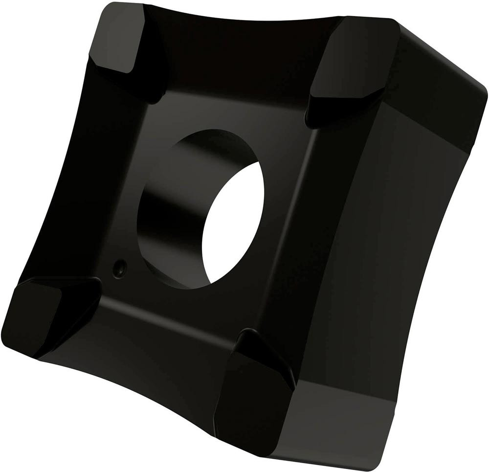 Doppelseitige Scarfing Wendeschneidplatte · quadratisch mit einer Hauptschneidenlänge von 19.05mm · 8.15mm dick und einen Arbeitsradius von 50mm für Rohrdurchmesser von 58 bis 73mm · T9335 MT-CVD beschichtetes funktionelles WC-Co Hartmetall innerhalb des ISO-Substratsbereichs P20-P45/M15-M40 und S15-S25 zum entgraten von Stahl · Edelstahl und Superlegierungen Rohren und Röhren