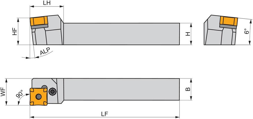 Kniehebel Scarfing Trägerwerkzeug mit 6° Freiwinkel für quadratische Wendeschneidplatten mit einer Hauptschneidenlänge von 19.05mm (Bezeichnung SNMX 19-R.. ) · Rechte Ausführung mit Wendeschneidplatte parallel zum Schaft · Höhe 25mm · Breite 25mm und 250mm lang zum entgraten von Rohren und Röhren
