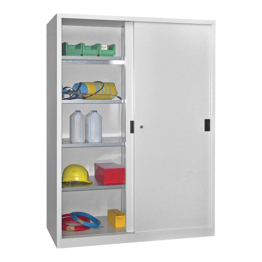 Schiebetürenschrank, Vollblechtüren, 4 verzinkte Böden, ohne Trennwand, BxTxH 1000x400x1950 mm, RAL 7035 EP525763