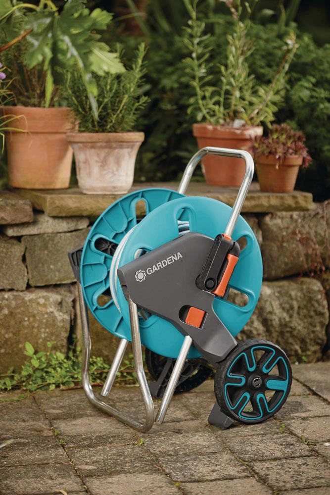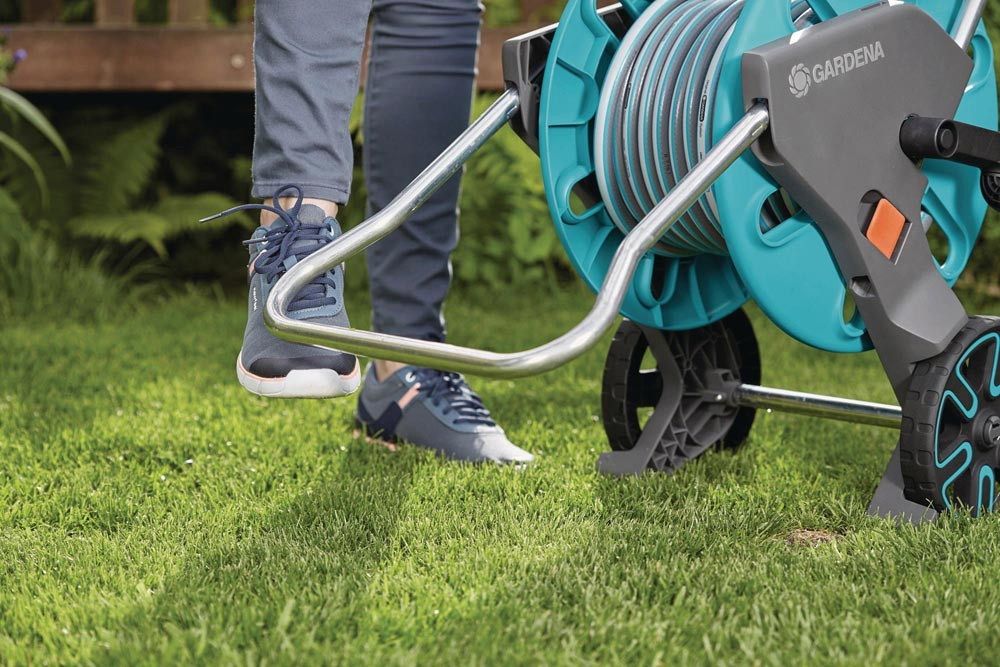 Das GARDENA Schlauchwagen CleverRoll M Set ist das ideale Starter-Set für eine bequeme Bewässerung von Gärten mittlerer Größe.