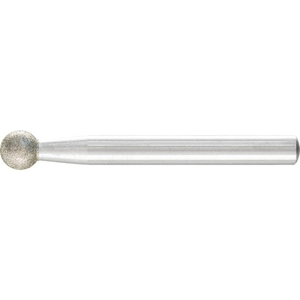 Kugelform · galvanisch gebundenes Diamantwerkzeug · zum Gravieren, Schleifen von Konturen und Entgraten geeignet · zur Bearbeitung von Hartmetall, Glas, Keramik, Porzellan, feuerfesten Werkstoffen, Ferrit, Silicium, Graphit, Gummi usw. · die Kugelform wird häufig im handgeführten Einsatz genutzt · empfohlene Umfangsgeschwindigkeit Vc =