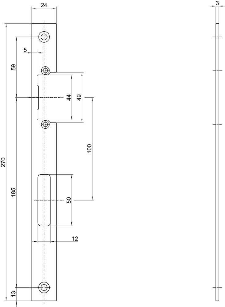 Schließblech B 9000 Edelstahl silber Breite 24 x Länge 270 mm käntig DIN links/rechts Fallendurchbruch 12 mm