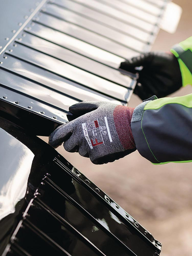 nach EN 388, EN 16350 · Kat. II · Material: Spezialfaserstrick (HPPE, Nylon, Wolframdraht und Elastan), 21 Gauge, Beschichtung: Polyurethan · verstärkte Daumenbeuge aus Nitril · kombiniert den Schnittschutzlevel F mit der maximalsten Leichtigkeit – optimal für Tätigkeiten geeignet, die Feinmotorik und präzises Arbeiten erfordern · hervorragender Trocken- und Nassgrip · Touchscreen-Funktion