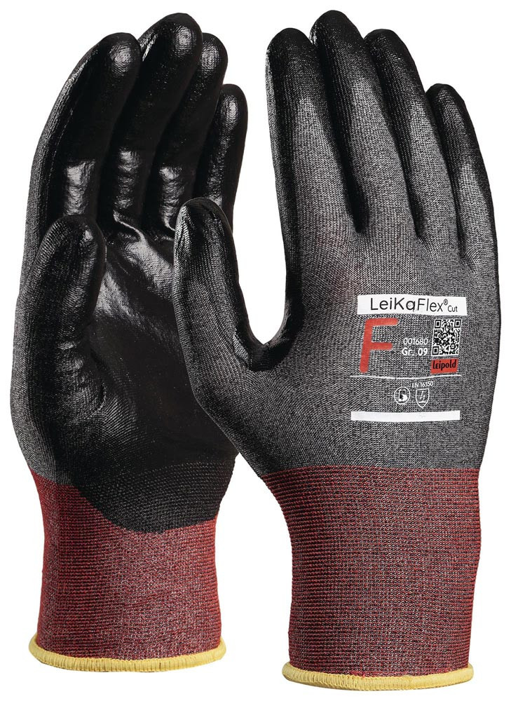 Schnittschutzhandschuhe LeiKaFlex® CUT 1680 ESD Größe 9 grau/schwarz/rot meliert EN 388, EN 16350 PSA-Kategorie II