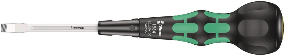 für Schlitzschrauben · Klinge: rund · nicromatt · Lasertip-Spitze · Kraftform Ball-Grip mit Abrollschutz, mehrkomponentig · mit Werkzeugfinder Take it easy: Farbkennzeichnung nach Profilen (Gelb = Schlitz) und Größenstempelung