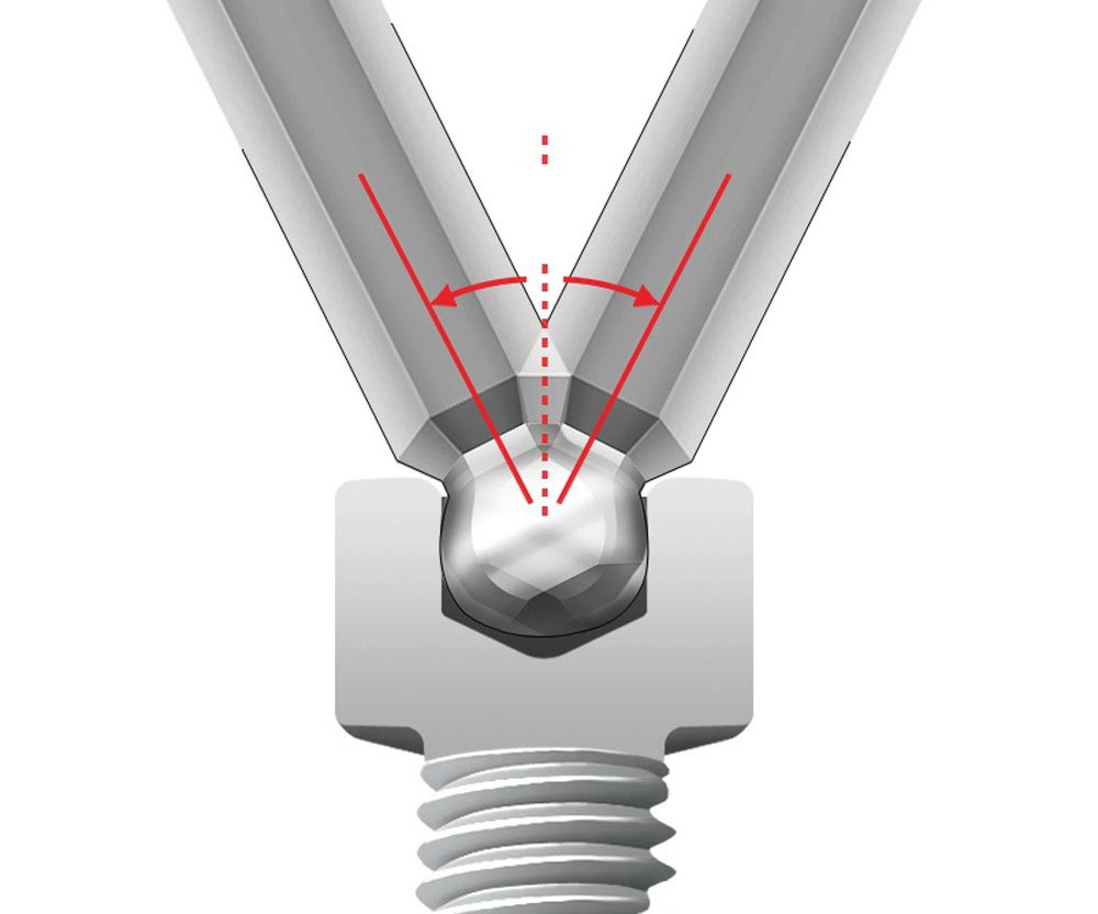 mit Kugelköpfen (ermöglicht das Schrauben bis zu einem Winkel von 25°) und Halteringen für die Schrauben (ab Größe 3 mm) · Klingen Chrom-Vanadium-Stahl · Griff aus glasfaserverstärktem Kunststoff · Schlüsselenden gefast · Lieferung im Handklapphalter mit Aushebetaste für einfaches Auswählen der benötigten Schlüsselgröße