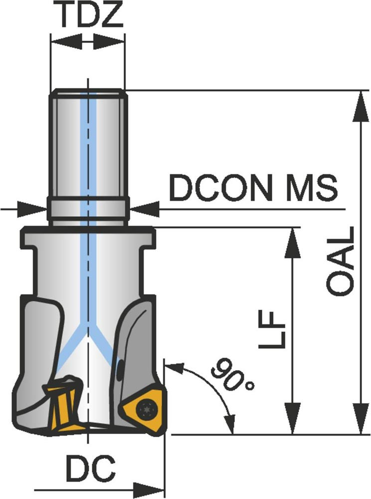 Plan-Eckfräser mit doppelt negativer Geometrie zum spannen von 2 Stück TNGX 1004.. doppelseitigen Wendeschneidplatten · Schnittdurchmesser 20mm mit 90° Anstellwinkel und M10 Gewindeschaft für modulare Standardhalter · 26mm Überstandslänge · Kühlkanalbohrung zum Planfräsen · flachen Schulterfräsen und flachen Nutfräsen mit einer maximalen Schnitttiefe von 5.0mm