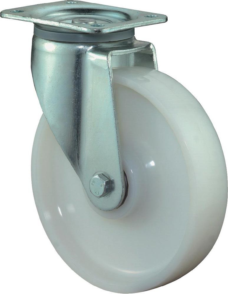Schwerlast-Lenkrolle, Kunststoff weiß, Durchm. 150 mm, Traglast 700 kg, Kugellager, Anschraubplatte E1617782