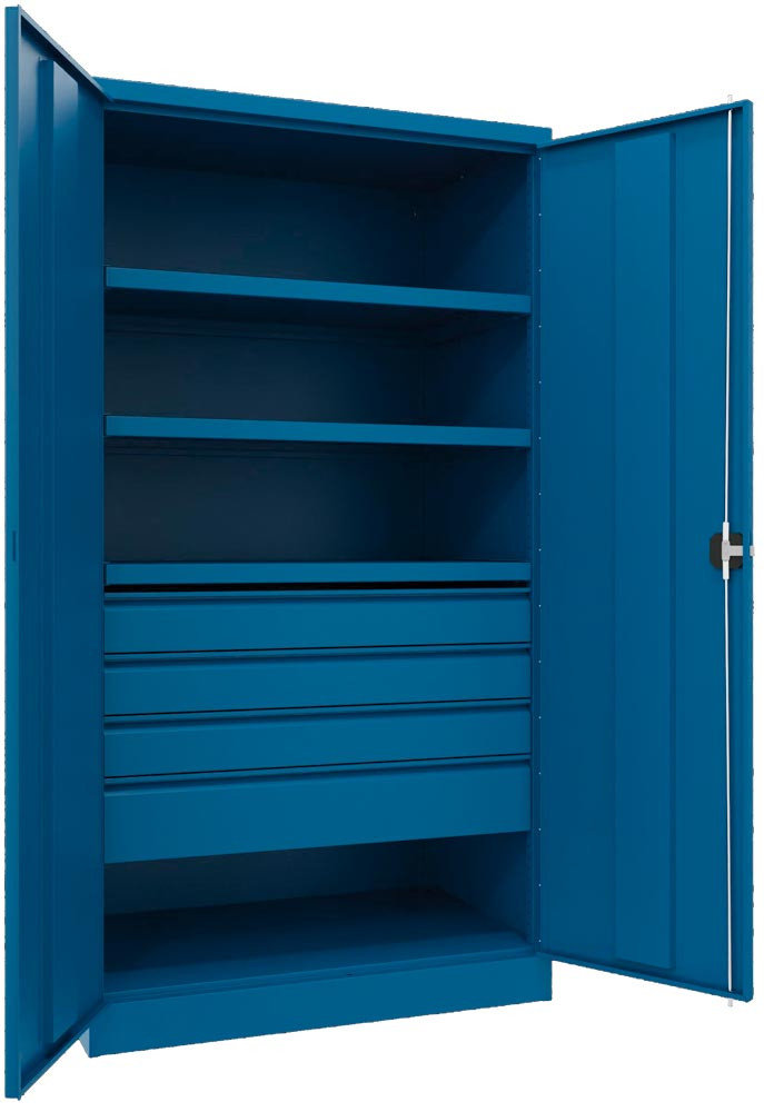 Schwerlastschrank, Vollblechtüren, ohne Trennwand, 3 Böden, 120 kg Traglast, 2 Schubl. 175 mm, BxTxH 1040x630x1950 mm, RAL 5010 EP562179