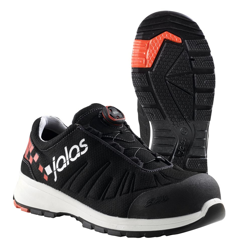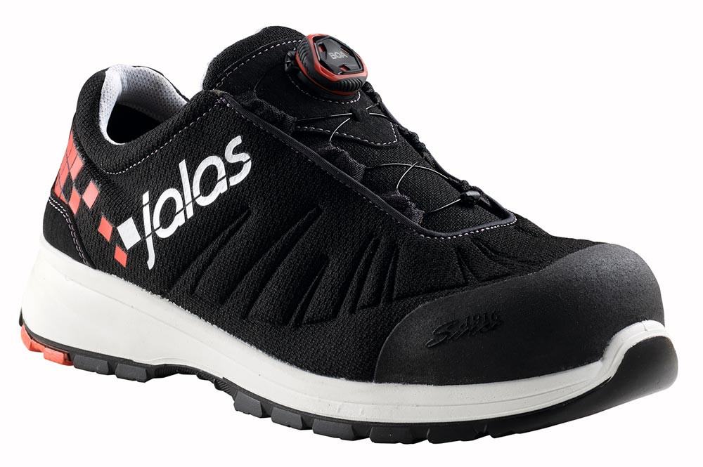 Nach EN ISO 20345:2011, Sicherheitsklasse S3 SRC ESD ∙ Textiler Durchtrittschutz aus plasmabehandeltem PTC-Komposit ∙ Obermaterial Textil, wasserabweisend mit wattiertem Schaftrand ∙ Bequemes, luftdurchlässiges Polyester-Funktionsfutter ∙ Aluminium-Zehenschutzkappe ∙ PU-Zwischensohle ∙ RPU-Laufsohle, ölbeständig, rutschhemmend ∙ FX3 Supreme Einlegesohle aus weichem, textilen und hartem E.V.A.-Material mit ESD-Ausrüstung und zweifacher Stoßdämpfungszone aus Poron® XRD® ∙ BOA® FIT Schnellverrschluss-System ∙ Geeignet für die Einlagenversorgung (DGUV 112-191/BGR 191) ∙ Weite 11 (N) ∙ Farbe schwarz/rot