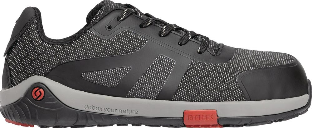 nach DIN EN ISO 20345:2024 · S3S FO HRO SR ESD · Textil · Alu-Flexkappe · Funktionsfutter · Barefoot Zero-Decksohle · Baak®Go&Relax-System zum fußgerechten Abknicken · EVA/Gummi-Sohle · Baak NeoShield · der Barfuß Sicherheitsschuh speziell für Barfußläufer