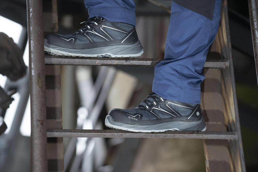 nach DIN EN ISO 20345:2024 · S3S FO LG SR ESD · Textilmaterial mit TPU-Applikation · Sandwich-Textilfutter · Composite-Flexkappe · Baak Go&Relax-System · Balance-Zone · ESD Softstep+ Einlegesohle · PU/PU-Sohle · textiler Durchtrittschutz · DGUV Regel 112-191 · Weite 11