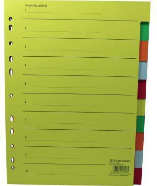 Soennecken Ordnerregister DIN A4 blanko Recyclingkarton mehrfarbig 10 Registerblätter