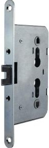 Metalltürschloss für Neben- und Sickentüren · leicht · Stulpe verzinkt · Nuss, Falle und Riegel aus Zinkdruckguss · PZ · mit Wechsel · Dornmaß 65 mm · DIN links/rechts verwendbar Weitere technische Eigenschaften: · Riegelausschluss: 10mm · Stulpausführung: abgerundet · Stulp: verzinkt