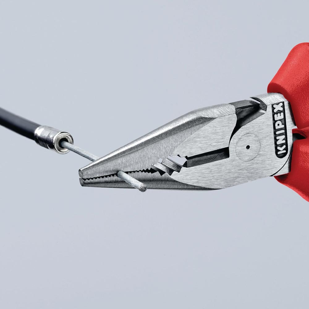 Greifzonen für Flach- und Rundmaterial · leichtes Schneiden dank hochübersetztem Kraftgelenk · lange Schneidkanten für dickere Kabel · Spezial-Werkzeugstahl in Sondergüte, mehrstufig ölgehärtet
