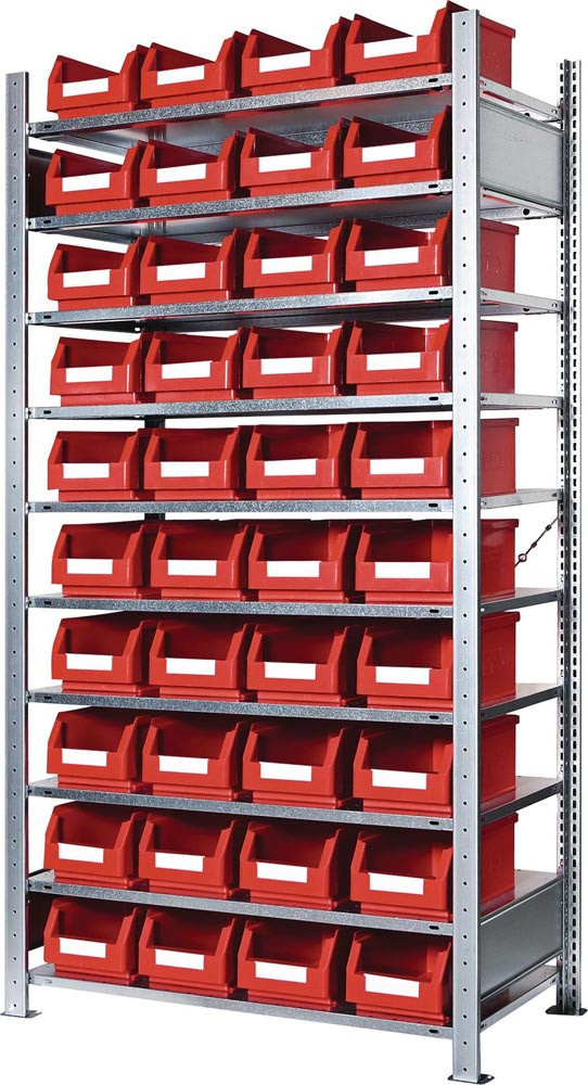 Steckregal H2000xB1000xT400mm Grundregal 10 Stahlböden 40 x Gr. 4 rot