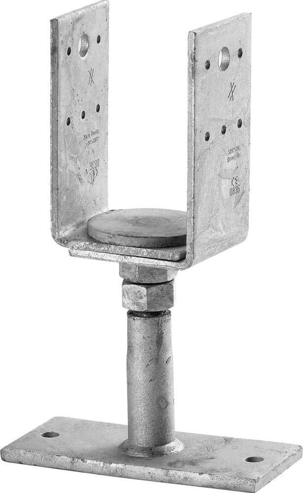 höhenverstellbar und kann vertikal belastet werden · wird mit Ankerbolzen am Betonfundament angeschlossen · geeignet zur Montage von Stützen / Pfosten, die nur auf Druck beansprucht werden · stückverzinkt 55 µm