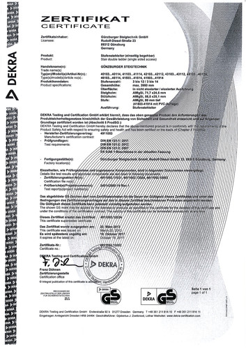 Aluminium · einseitig begehbar · stabile Rechteckrohr-Holme · 80 mm tiefe, geriffelte Stufen und große Plattform · Stufenabstand 235 mm · 4-fach gebördelte Stufen-/Holmverbindung · konische Holmführung für sicheren Stand · Leitergelenk "safe-cap" · ergo-pad® Griffzone mit Klemmmechanismus · nivello®-Leiterschuhe mit patentierter 2-Achsen-Neigungstechnik · praktische Ablageschale mit integrierten Haken und Werkzeugaufnahmen · Spreizsicherung durch zwei hochfeste Polyestergurte ab 7 Stufen · max. Gesamtbelastung 150 kg