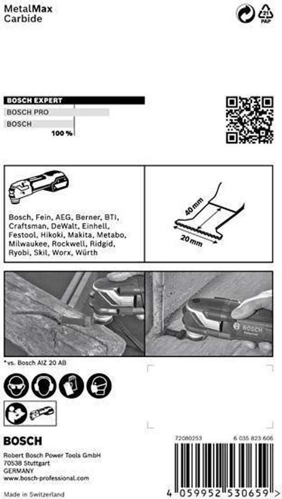 Herausragende Lebensdauer in harten und zähen Metallen! Zusätzliche Beschichtung macht Carbide härter Wenn gehärtete Schrauben rosten oder auf andere Weise stecken bleiben · besteht die einzige Option darin · sie flach an der Oberfläche abzuschneiden. Der EXPERT MetalMax macht auch in gehärtetem Metall einen perfekten bündigen Schnitt. Mit seiner herausragenden Langlebigkeit ist es das perfekte Zubehör für Handwerker · die harte Materialien mit einem Multifunktionswerkzeug schneiden möchten. Du hast gesehen · wie mühelos das Multifunktionswerkzeug in und durch Holz sägen kann: Mit dem Bosch EXPERT MetalMax Blatt für Multifunktionswerkzeuge kann Metall genauso zersägt werden. Es sägt sogar mühelos gehärtete Fensterschrauben und Armierungen. Überragende Lebensdauer dank Bosch Carbide Technology