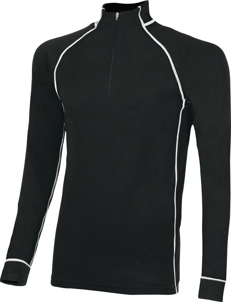 100% Polypropylen, ca. 130 g/m² · Stehkragen mit Reißverschluss · flache Nähte um Hautirritationen zu vermeiden · optimale Atmungsaktivität für ein warmes und trockenes Hautklima