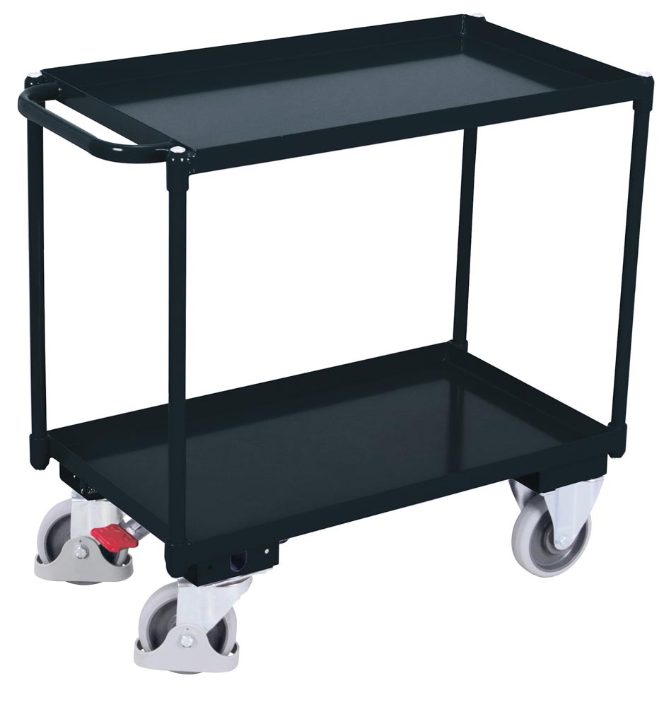 Tischwagen, 2 öldicht verschweißte Wannen, Ladefläche LxB 845x495 mm, Außenmaße LxBxH 985x500x910 mm, Traglast 400 kg, RAL 7016 anthrazitgrau EP556237