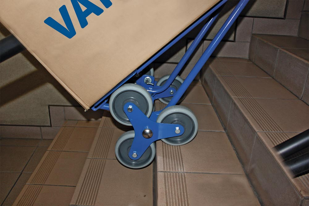 Treppenkarre, Schaufel-BxT 480x300 mm, BxTxH 570x676x1310 mm, Traglast 200 kg, 2 dreiarmige Radsterne mit Vollgummibereifung EP527747