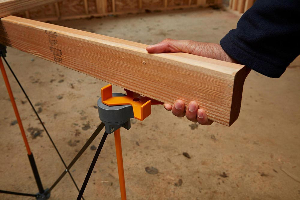 flexible Lösung für Baustelle, privaten Arbeitsbereich oder Werkstatt · robuste Stahlkonstruktion · flexible Abstandshalter, um den Aufprall schwerer Gegenstände und Maschinen zu absorbieren · langlebige Polymer-P-Tops: P-Tops an jedem Kontaktpunkt markieren nicht die Oberfläche des Projekts und lassen die Sägeblätter keine möglichen Schäden an den Abstandshaltern verursachen · in Sekundenschnelle ist ein 0,6 m x 1 m großer Arbeitsplatz eingerichtet · Abmessungen: Höhe 76 cm Breite 64 cm Länge 124 cm
