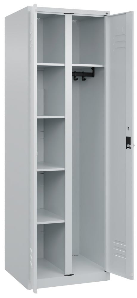 Wäsche-/Garderobenschrank Premium, BxTxH 600x500x1850 mm, 2 Abteile a 300 mm, Bodenstehend, Drehriegel, RAL 7035 EP562004