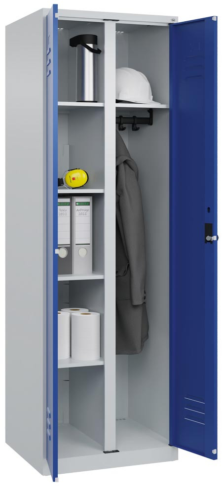 Wäsche-/Garderobenschrank Premium, BxTxH 600x500x1850 mm, 2 Abteile a 300 mm, Bodenstehend, Drehriegel, RAL 7035/5010 EP562005