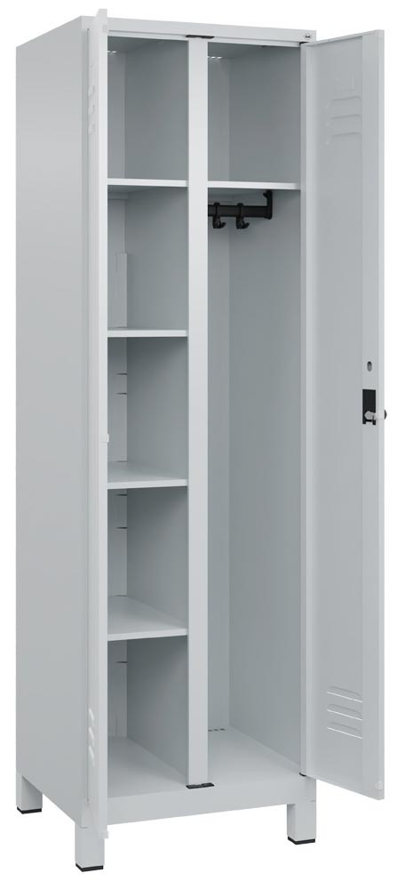 Wäsche-/Garderobenschrank Premium, BxTxH 600x500x1950 mm, 2 Abteile a 300 mm, mit Füßen, Drehriegel, RAL 7035 EP562022