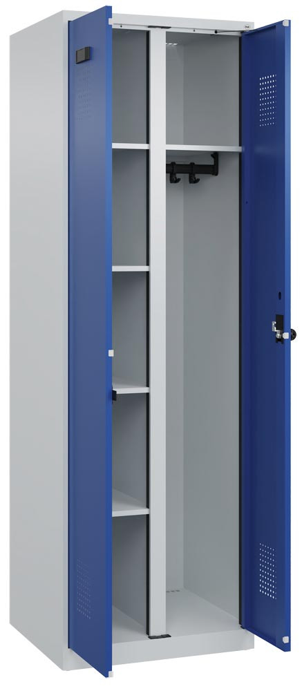 Wäsche-/Garderobenschrank Premium Plus, BxTxH 600x500x1850 mm, 2 Abteile a 300 mm, Bodenstehend, Drehriegel, RAL 7035/5010 EP562059
