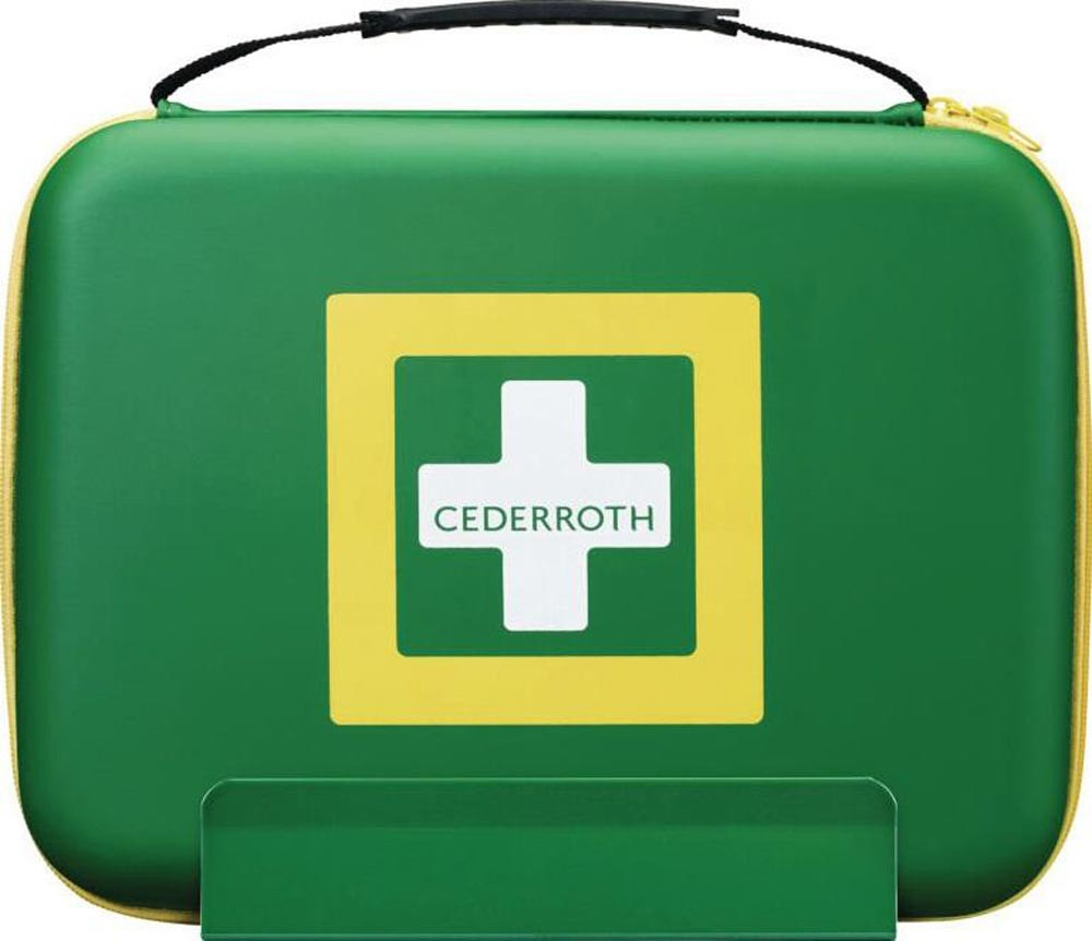 aus lackiertem Blech · für einen festen Platz der Erste-Hilfe-Taschen