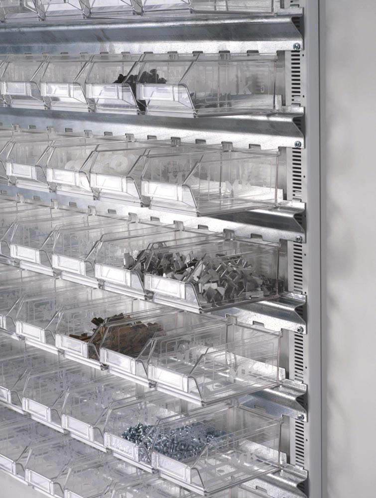 Wandsystem H1000xB1010xTmm Stahl verzinkt mit Sichtlagerkästen 45 x MK5, 12 x MK4 transparent E6495710