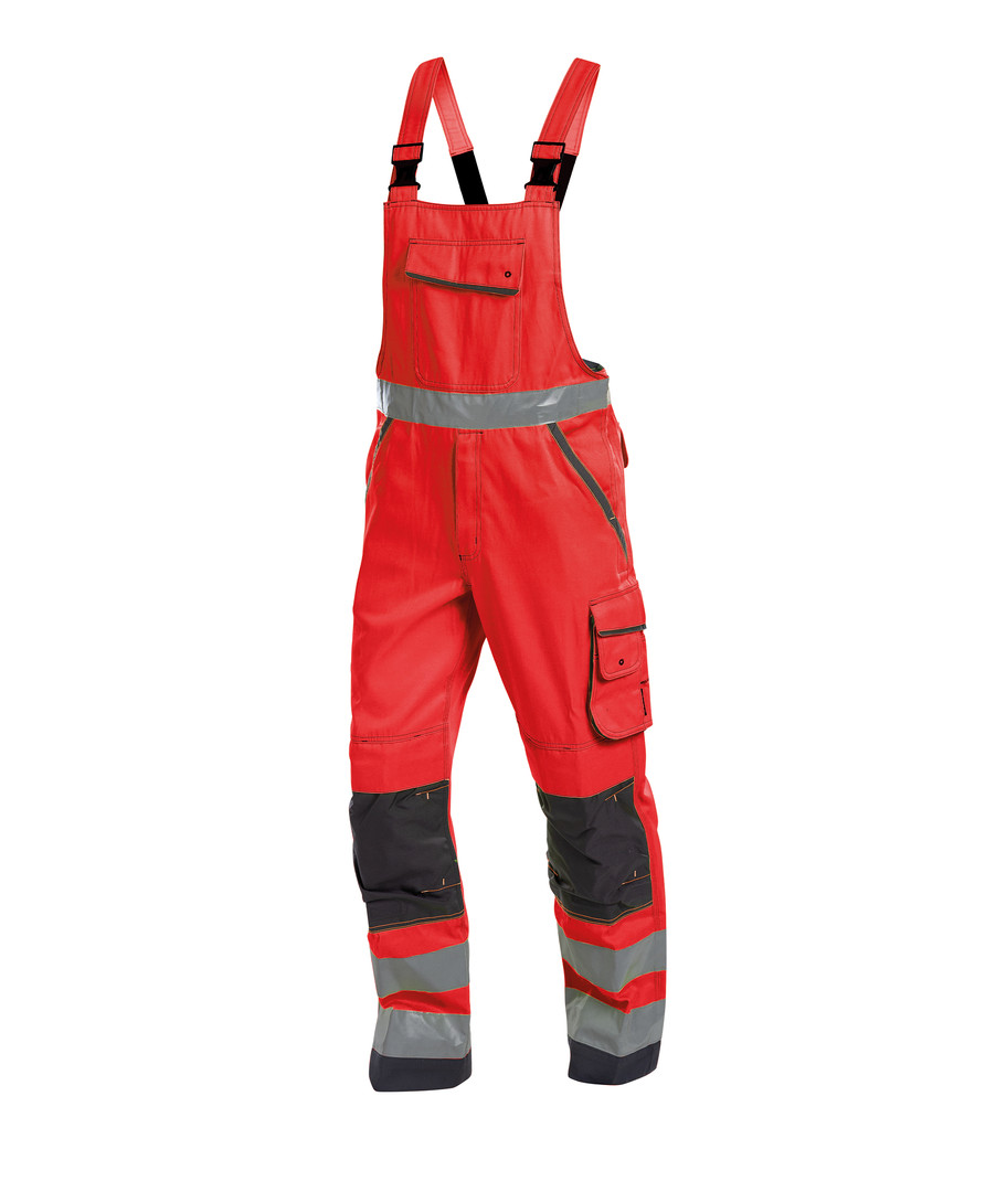 Warnschutz Latzhose Malmedy neonrot/zementgrau Gr. 58 VE=1