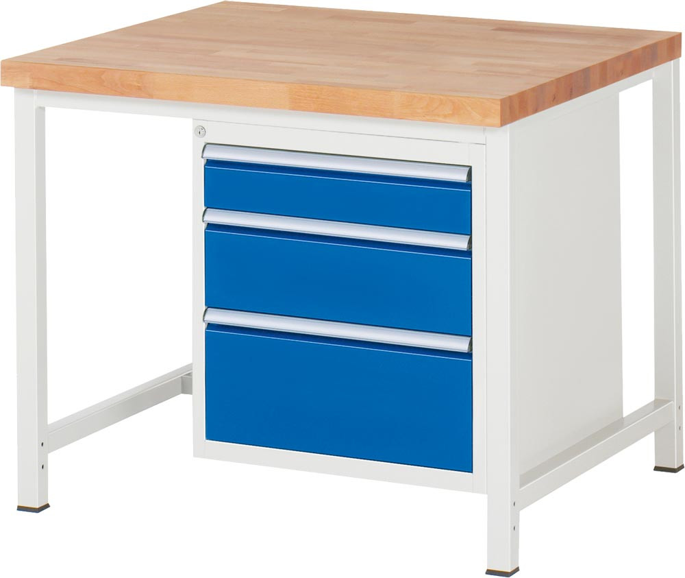 Werkbank, BxTxH 1000x900x840-1040 mm, 3 Schubladen 120/180/240 mm, Platte Buche 40 mm, RAL 7035/5010