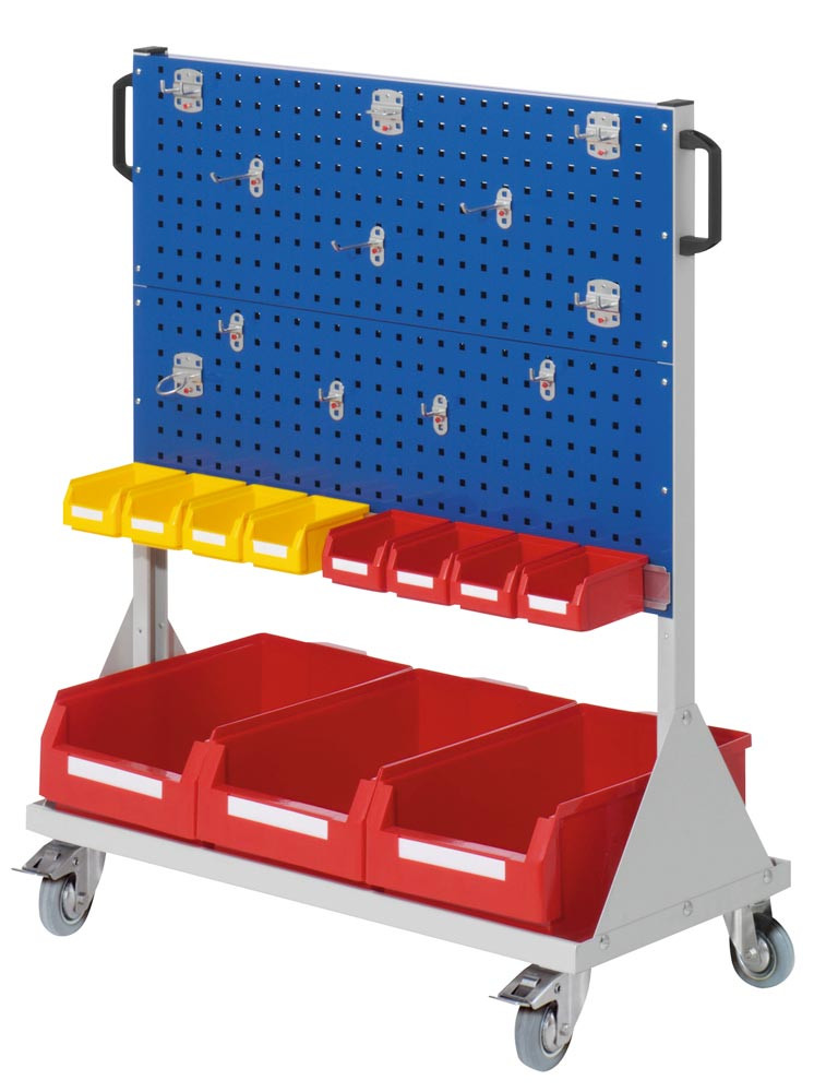 Werkstattwagen, 2 Lochpl. je Seite, Hakensort. 12-tlg., div. Kästen, Zubehör, BxTxH 1000x500x1230 mm, RAL 7035/5010 EP517425