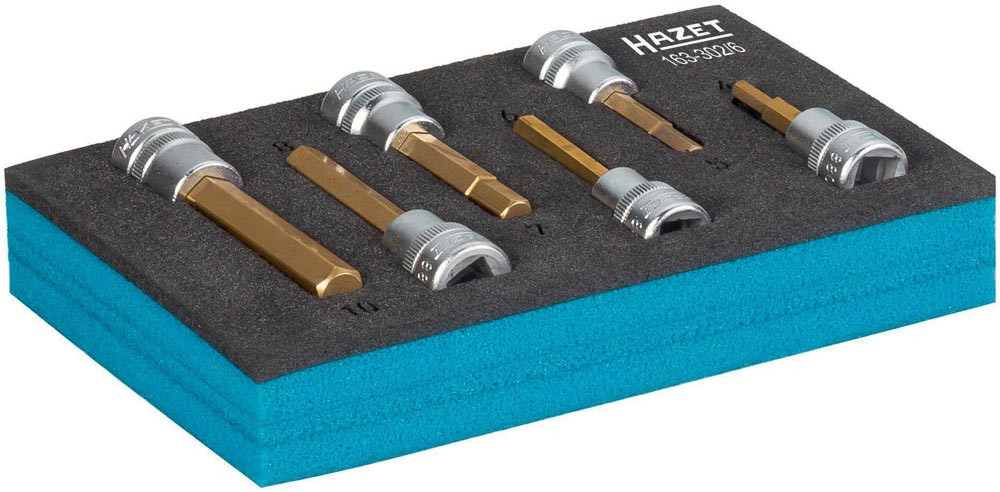 (1/9 Modul) Schraubendreher-Steckschlüsseleinsatz-Satz · je 1 Schraubendreher-Steckschlüsseleinsatz 10 mm (3/8″) für Innen-Sechskant-Schrauben SW 4 / 5 / 6 / 7 / 8 / 10