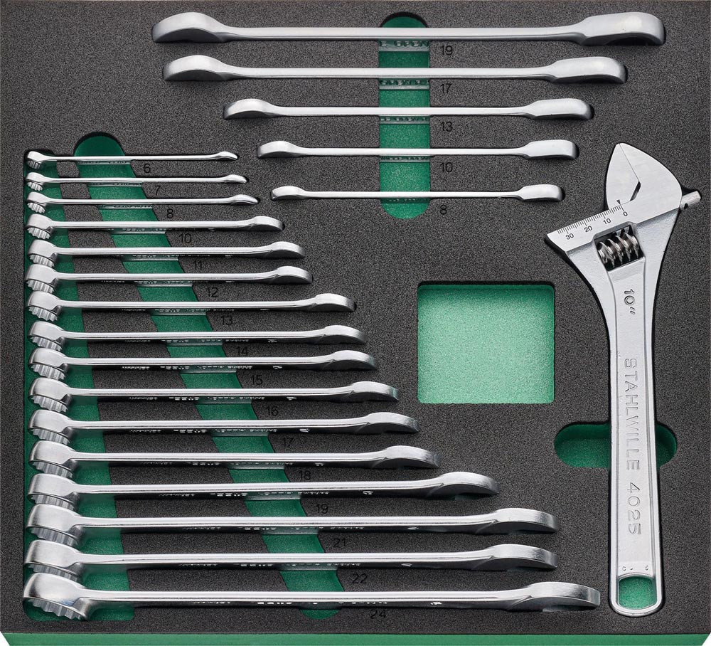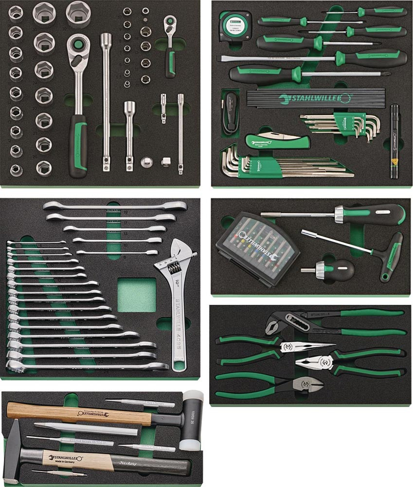 zur Ausstattung von Werkbänken, Werkstattwagen und Werkzeug-Trolleys im industriellen Einsatz · umfassende Zusammenstellung für höchste Ansprüche: QR-Feinzahnknarren mit Verlängerungen, Steckschlüsseleinsätze bis 32 mm, Bit-Ratschenschraubendreher und Bit-Box, Schraubendreher, diverse Zangen u. v. m. · hergestellt aus hochwertigem Chrome Alloy Steel mit verchromter, korrosionsbeständiger Oberfläche für eine lange Lebensdauer · patentiertes QuickRelease-Verriegelungssystem · Werkzeug ist sicher integriert in TCS-Einlagen - langlebige, chemikalienbeständige Schaumstoffeinlagen mit präzisen Werkzeugaussparungen und einer auffälligen Signalfläche für eine schnelle Vollständigkeitskontrolle
