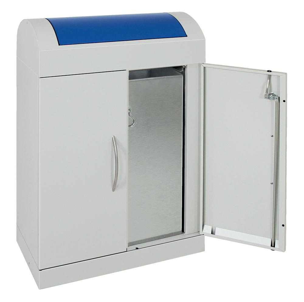 Werstoffsammelstation, Volumen 1x90 Liter, BxTxH 620x320x975 mm, Korpus RAL 7035 lichtgrau, Schwingdeckel blau EP530668