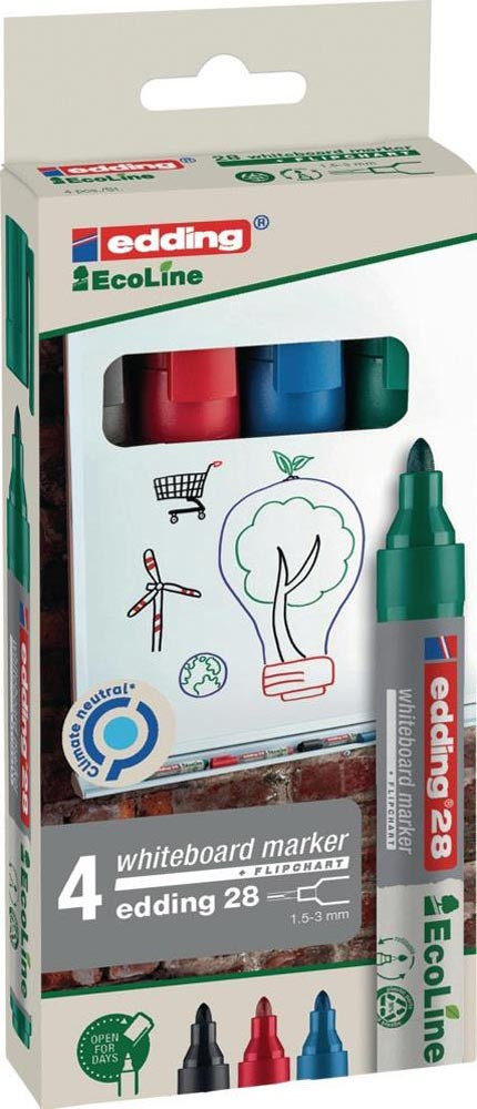 Whiteboardmarker-Set 28 EcoLine schwarz/rot/blau/grün Strichbreite 1,5-3 mm Rundspitze
